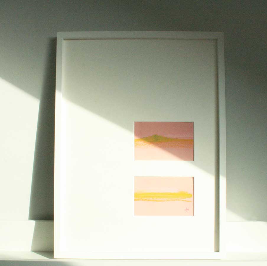 When I made these colour studies, I wasn't aiming for anything at all. I was just playing with the materials, but the outcome really reminded my of the softly rolling landscape of East Lothian in Scotland.